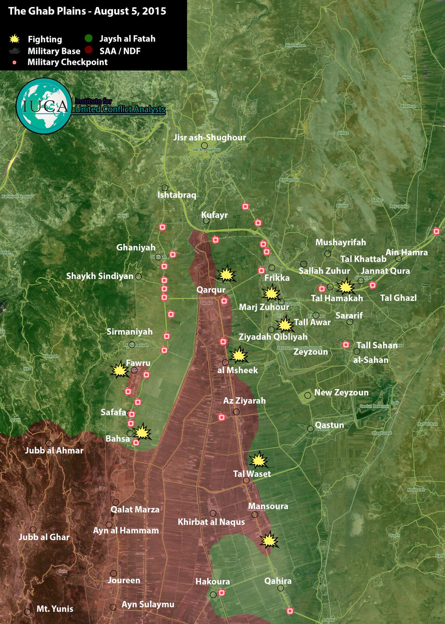 Al otro lado del Gahb Nusra y otros grupos rebeldes siguen presionando sobre Bahsa, Fawru y Jouren, de hecho algunas informaciones indican que han logrado conquistar Fawru, Basha y Safafa.