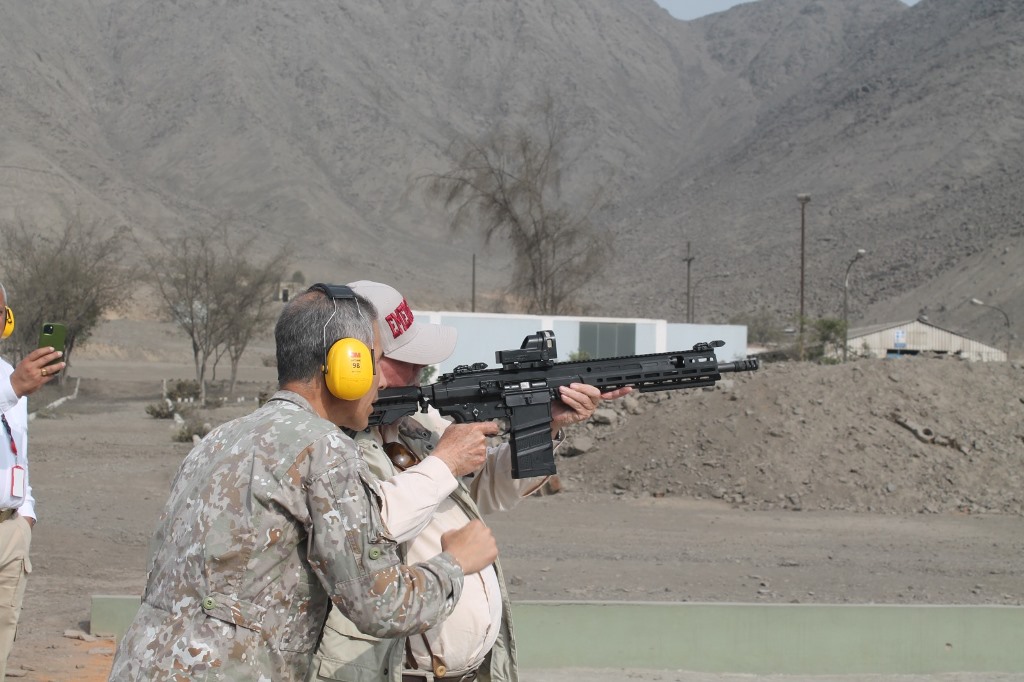 Finalmente, visitaron el Polígono de Tiro de FAME SAC, donde tuvieron oportunidad de disparar no solo el ARAD 7 de 7,62 x 51 sino el ARAD de 5,56 x 45 mm, así como las pistolas Jericho F/RS, así como las de la serie II/IIM en sus versiones metálicas y de polímero, de 9 mm, y la Masada de 9 mm, fabricada en polímero de alta resistencia, de percutor lanzado y capacidad de 17+1 cartuchos.
