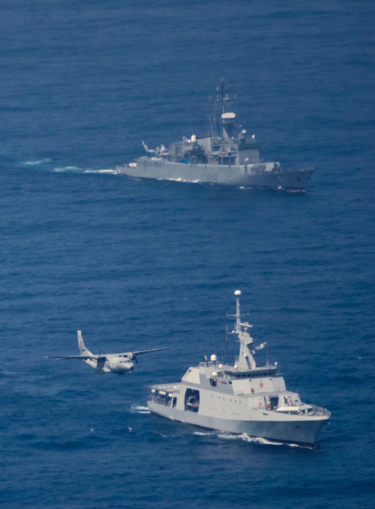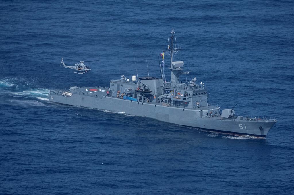 Del twitter de la ARC, equipada con 8 misiles anti-buque pero sin los lanzadores de torpedos, y acompañada por uno de los nuevos Bell 412, tal vez en camino al RIMPAC.